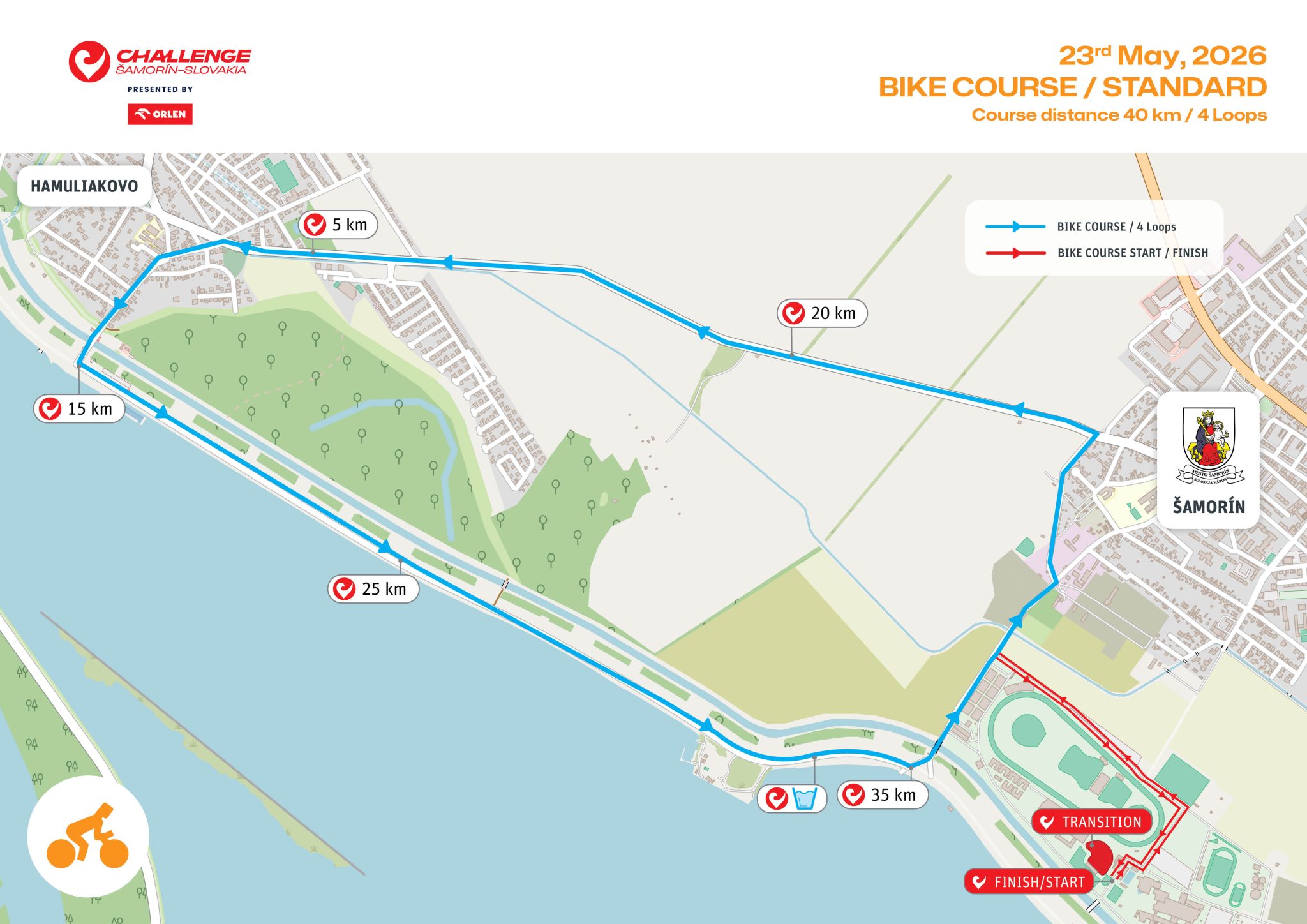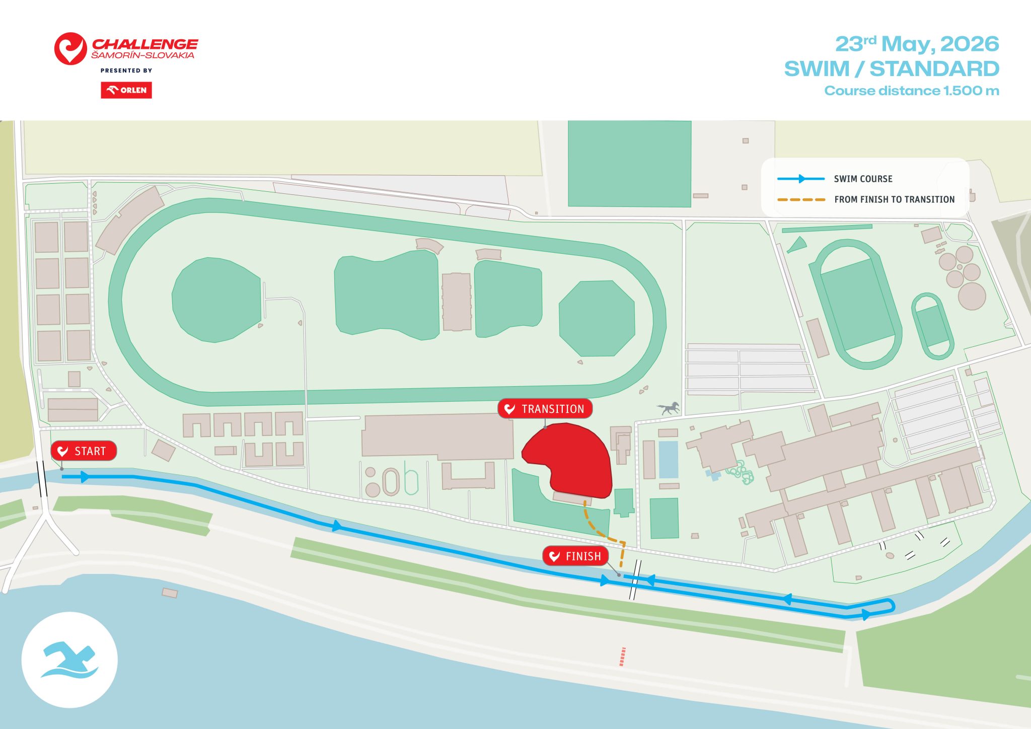 The Standard (Olympic) distance (1.5, 40, 10)  event will take place at the incredible x-bionic® sphere in Šamorín, Slovakia.