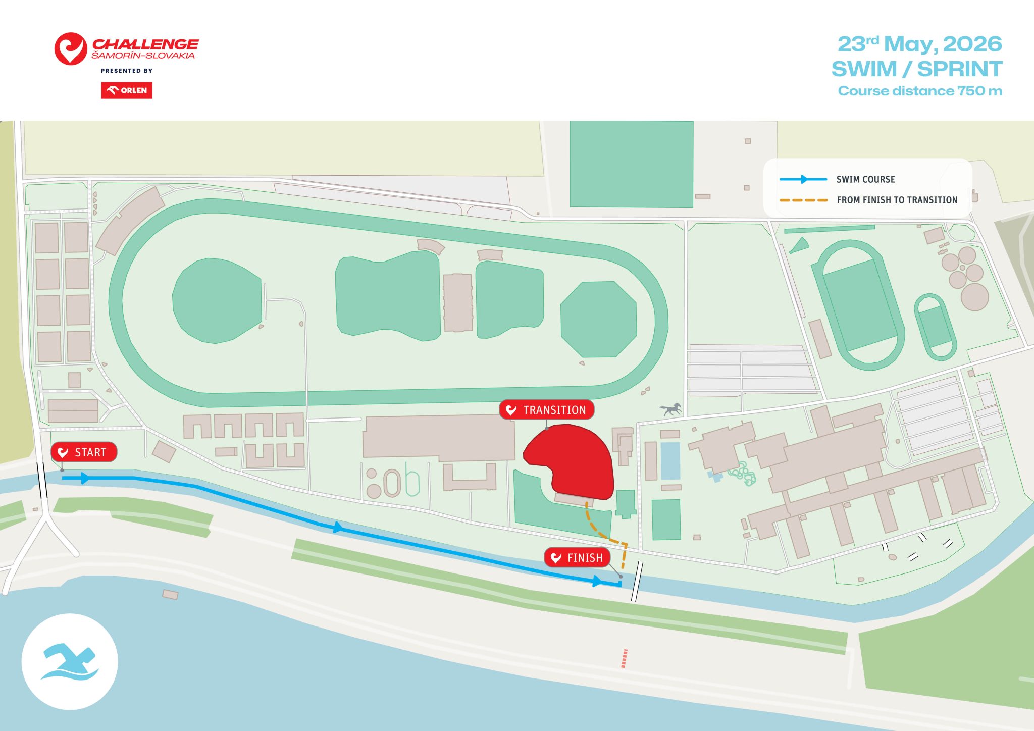 The sprint distance (750, 20, 5) event will take place at the incredible x-bionic® sphere in Šamorín, Slovakia.
